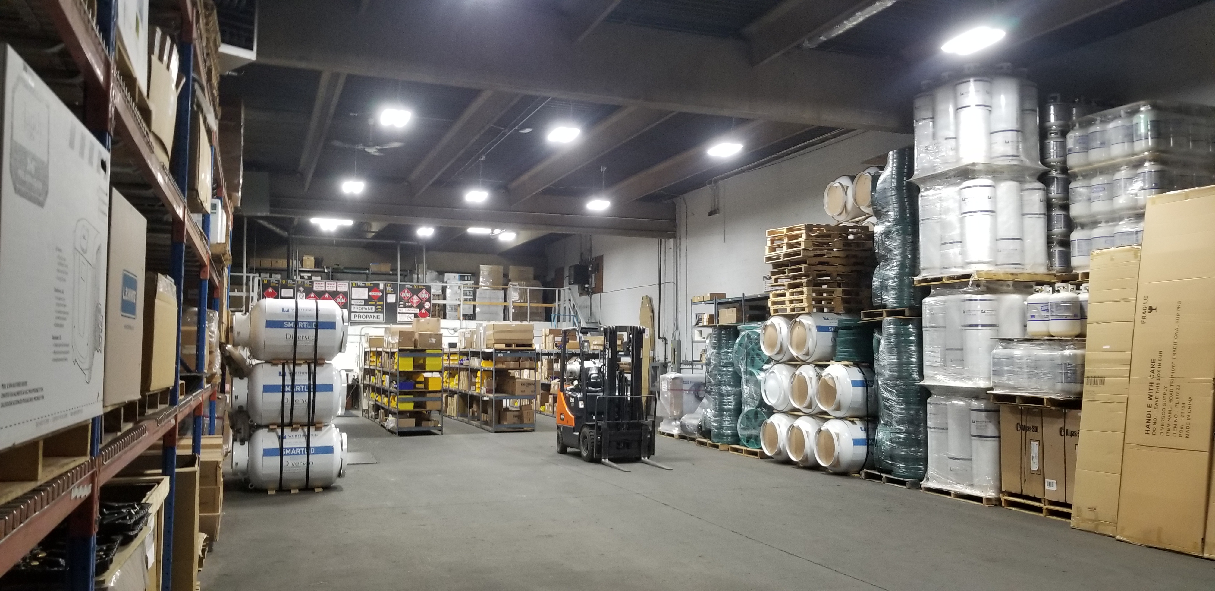Efficient Eco Solutions successfully addressed the lighting issues faced by Diversco Supply in Calgary, Alberta. The outdated lighting system was consuming a considerable amount of energy, prompting the need for an upgrade. Through a Full LED Retrofit, Efficient Eco Solutions transformed the overall ambiance of Diversco's warehouse, strategically placing lighting fixtures to provide adequate illumination in all areas. The outcome of this project has resulted in increased visibility and employee satisfaction, while also yielding significant cost savings on power bills.